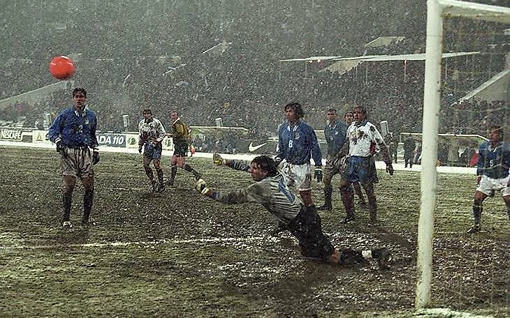 Во-первых, это конечно, 1997 год, когда на стадионе «Динамо» был страшный холод, а наша сборная соперничала с Италией в стыковом матче отборочного турнира ЧМ-1998.
