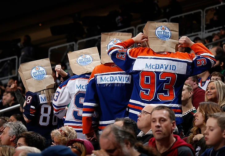Футбольный/баскетбольный эквивалент: «Чикаго Буллс»... с той лишь разницей, что пик «Ойлерс» пришелся не на 90-е, а на 80-е. В 1977 году канадцы наняли тренера Глена Сатера (Фил Джексон), годом позже выменяли из «Индианаполиса» лучшего игрока мира Уэйна Гретцки (Майкл Джордан), а затем прибавили к нему Яри Курри (Скотти Пиппен) и Марка Мессье (для которого у меня нет подходящей аналогии, но, судя по тому, что мне о нем рассказывали, это Роберт Пэриш, Деннис Родман, Стив Керр и лицензионная версия Тони Кукоча одновременно). Закончилось все это тем, что «Ойлерс» взяли пять Кубков Стэнли в период с 1983 по 1990 год и вошли в историю как одна из лучших команд НХЛ всех времен... а потом развалились так же, как и «Буллс» после ухода ЭмДжея. В 2006-м «Эдмонтон» впервые за 16 лет вышел в финал Кубка Стэнли, но проиграл в нем «Каролине», а после этого десять сезонов подряд не выбирался в плей-офф. Ровно до того момента, пока в команде не появился...