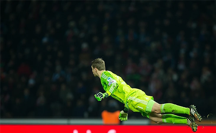 Нойер сейчас не допускает грубых ошибок на линии и на выходах. И кроме того, у него очень тяжелая работа по той причине, что большую часть времени в “Баварии” он вынужден вязать, разгадывать кроссворды или разговаривать с болельщиками. При этом бывают матчи, когда он до 70-й минуты пинает балду, а на 75-й спасает команду от пропущенного мяча. Он умудряется сохранять предельную концентрацию в любой ситуации. И ему часто просто не нужно совершать прыжков, потому что он правильно занимает позицию и очень хорошо взаимодействует с защитниками. Поэтому он, наверное, и лучший голкипер мира сегодня.