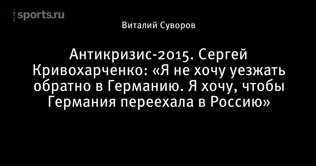 Антикризис-2015. Сергей Кривохарченко: «Я не хочу уезжать обратно в Германию. Я хочу, чтобы Германия переехала в Россию»