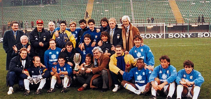 А в овертайме гол Массимо Криппа принес "Парме" общую победу! Единственный случай за все время розыгрыша трофея в двухматчевом формате, когда команде удалось отыграться в гостях. Наверное, победа досталась "Парме" по праву, особенно учитывая, что "Милан", уступивший "Марселю" в финале Лиги Чемпионов, изначально не должен был принимать участие в этом турнире.