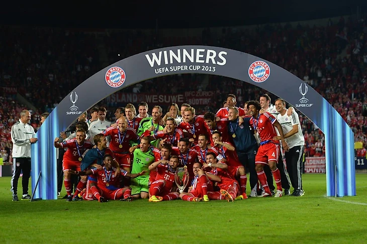 В это трудно поверить, но "Бавария" в 2013 году стала первой немецкой командой, выигравшей Суперкубок УЕФА! Ранее неудачи в этом турнире кроме "Баварии" терпели дортмундская "Боруссия", "Вердер" и "Гамбург". А в 1974 году клубы из разных Германий,- "Бавария" и "Магдебург", - не сумели договориться о проведении турнира. Лучше поздно, чем никогда.