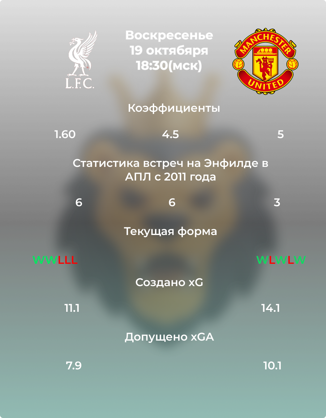 +2 17 октября, 15:02 Ливерпуль — Ман Юнайтед. Превью 1 Что нас ждет в центральном матче тура? Давайте соберем паззл: