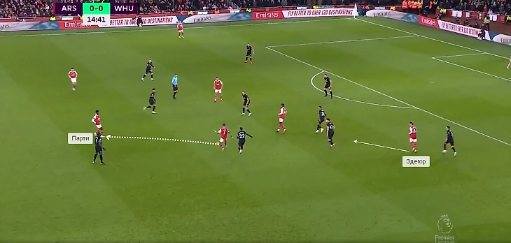 На чужой половине его умение сканировать пространство добавляет непредсказуемости владению «Арсенала». Против «Вест Хэма» Томас получил пас от Уайта и начал рывок с мячом – Эдегор двигался ближе к нему.
