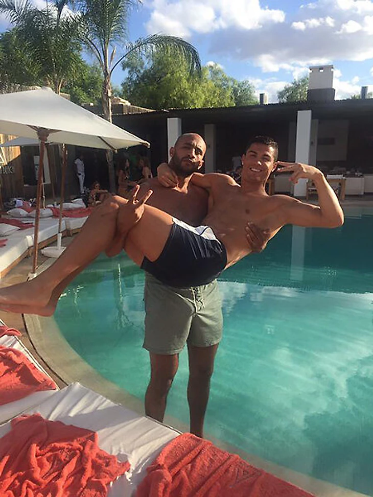 Марокканец Бадр Хари – звездный кикбоксер и друг Криштиану Роналду. Когда Роналду выступал за «Реал», то регулярно прилетал к нему в Марокко. Хари и Роналду часто выкладывали совместные фото у бассейна и называли друг друга братьями. У них есть общая фотография с Марсело и Лукой Модричем на базе «Реала». Самый популярный кадр – где Хари держит Роналду на руках: «Только что поженились! Ха-ха-ха!»