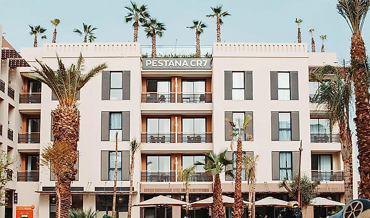Отель Pestana CR7 Marrakech, который находится в бывшей столице Марракеше, рассчитан на 174 номера и смешивает европейскую и североафриканскую культуры: средиземноморская еда португальского происхождения, чайные марокканские церемонии со специальным сервизом в лобби, закуска тапас к пиву и вину во время просмотра крупных соревнований в спорт-баре.