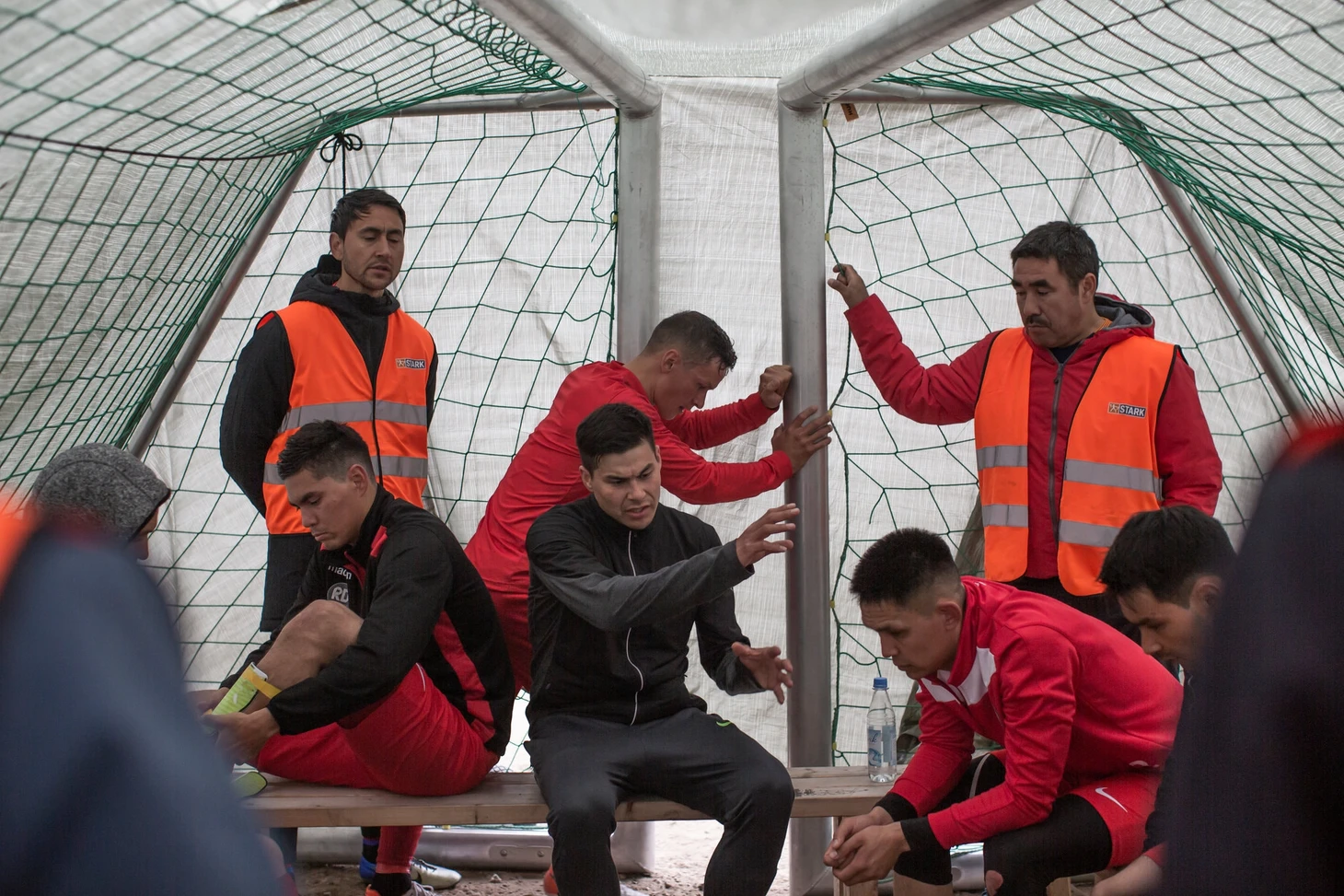 Лайфхак от гренладских футболистов. Если у вашей команды нет раздевалки, но есть пара запасных ворот, можно: сдвинуть ворота, обтянуть их тентом, и получить вот такую замечательную раздевалку.