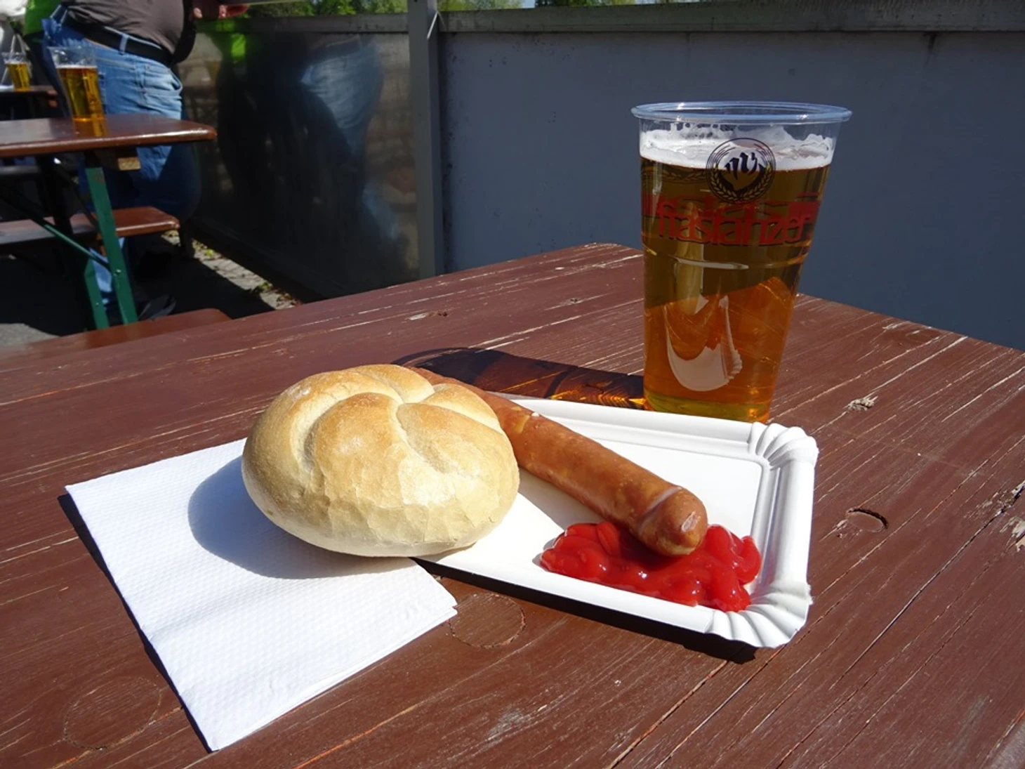 Вход на трибуны бесплатный. Пиво стоит 2,60 евро (в районе 200 рублей), баварские сосиски 2,5 евро, стейк 3 евро. Сосиски – это своего рода символ Германии, которым сами немцы очень гордятся и, можно даже сказать, нежно любят, называя ласково Würstchen – «колбасочками» (от слова Wurst – колбаса).