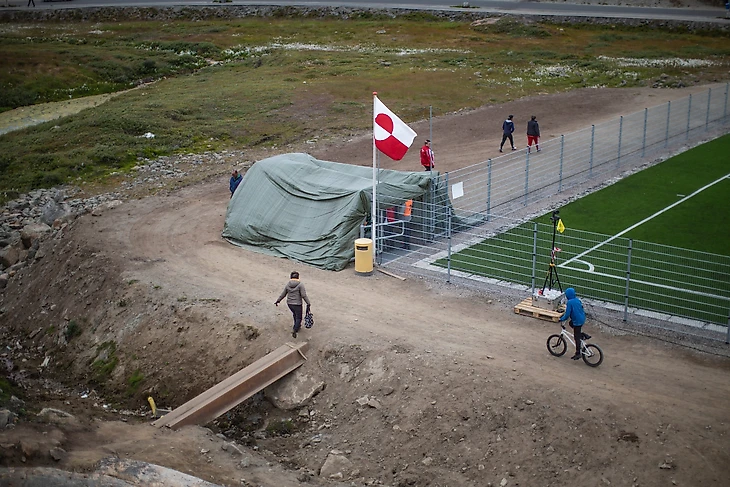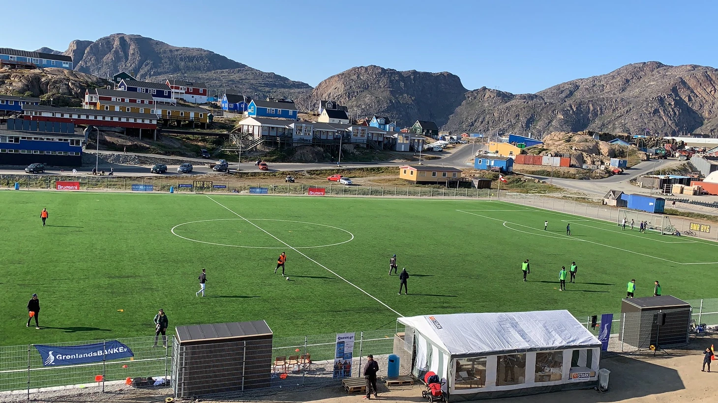 Натуральный газон в Гренландии вырастить нереально по очевидным причинам – снег начинает сходить лишь в конце мая, а к концу сентября-началу октября выпадает вновь. Поэтому сейчас на острове есть шесть полей с искусственным покрытием, а еще пару лет назад это были вытоптанные участки земли перемешу с камнями.