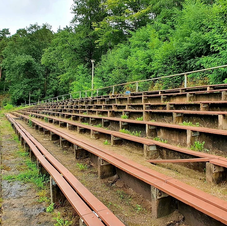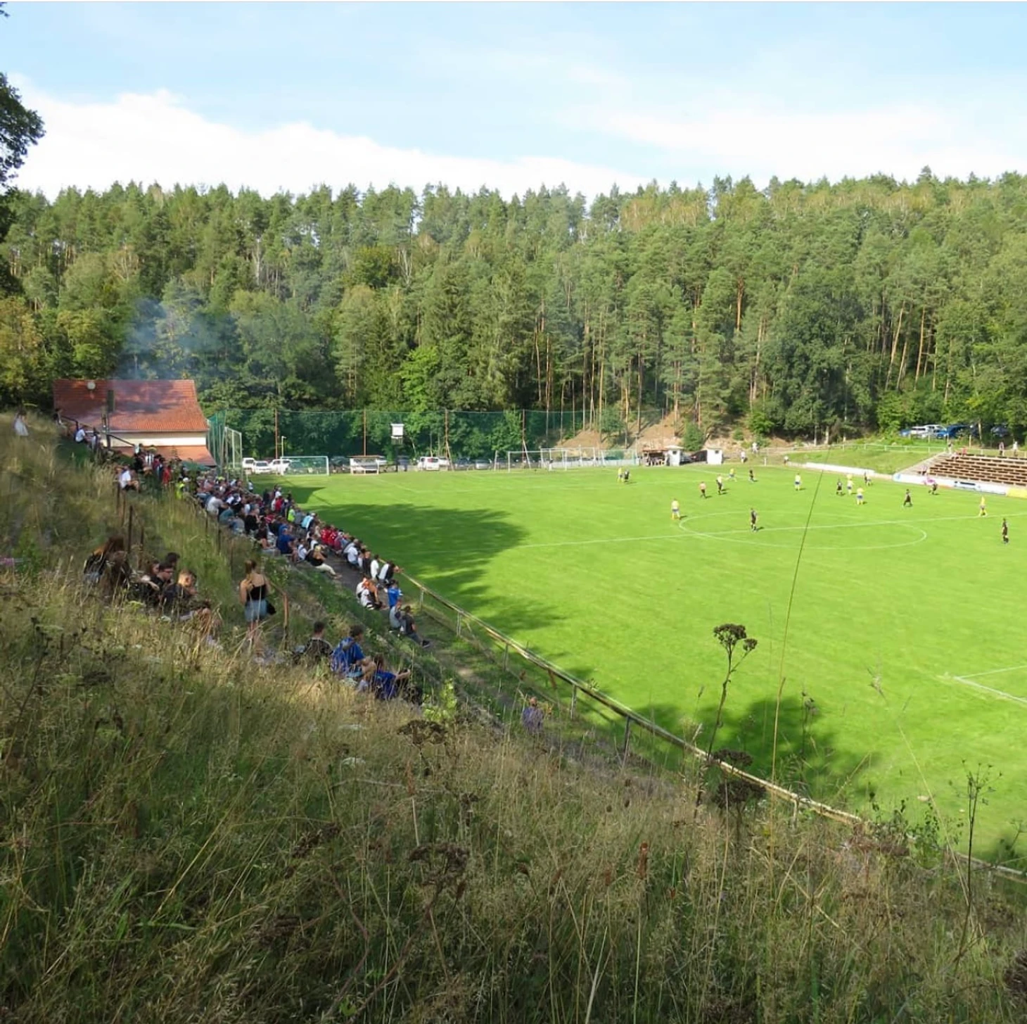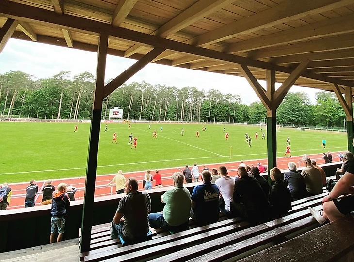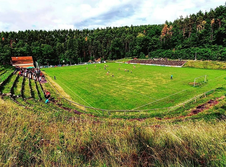 Изначально стадион расположенный прямо посередине леса, строился для участия местной футбольной команды во втором дивизионе бывшего ГДР, поэтому он вмещает вдвое больше болельщиков (8 тыс.), чем жителей всей деревушки.
