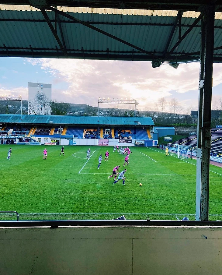 А теперь о красавце «Каппилоу Парк»: с одной стороны одноярусная трибуна для сидячих мест. На ее крыше расположены яркие прожектора. Напротив находится «коровник», как его называют, который представляет собой трибуну классического вида и необычен тем, что у него есть сиденья спереди и террасы сзади. Дальше открывается вид на большой подъемный кран, напоминающий о временах кораблестроения в Инверклайде. В 1902 году «Каппилоу» принял один международный матч – Шотландии против Уэльса.