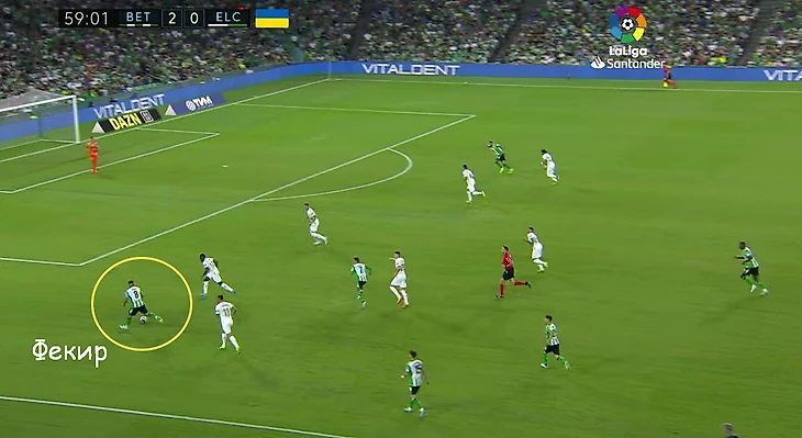 Фекир – второй (после Каналеса) по ожидаемым ассистам (xA = 2.5), ключевым передачам (24), кроссам (57), действиям, приведшим к удару (SCA = 60), созданным шансам с игры на 90 минут (1.40) и третьим по передачам в штрафную (17).