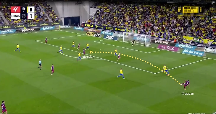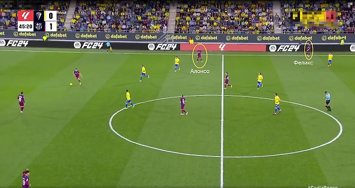 Самой яркой фигура матча стал Жоау Феликс. Против «Кадиса» на него не ложилась большая работа без мяча в прессинге, поэтому лучше подсвечивались его креативные качества в атаке. Португалец мог открываться в полуфланге, мог меняться местами с Алонсо и оказываться на краю поля, мог опускаться в глубину для помощи в продвижении.