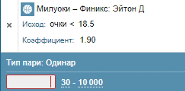 Д. Эйтон ( Финикс ) меньше 18.5 очков 1.90 20 очков - - -