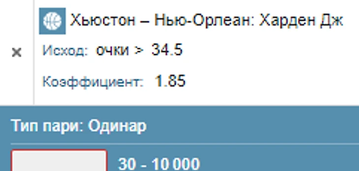 Дж. Харден ( Хьюстон ) больше 34.5 очка 1.85 40 очков + + +