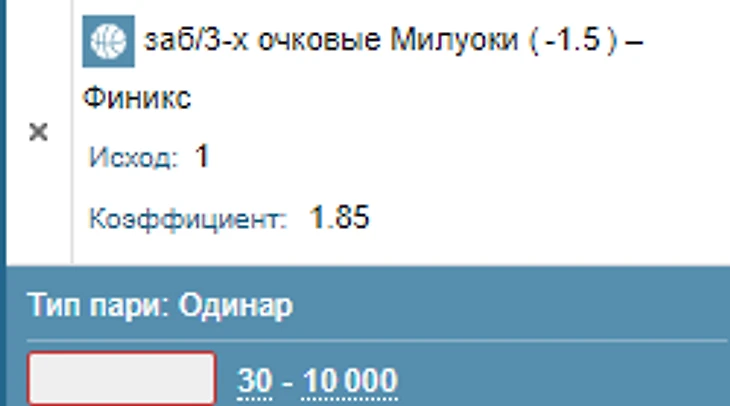 забитые трёхочковые Милуоки - 1.5 1.85 15- 7 + + +