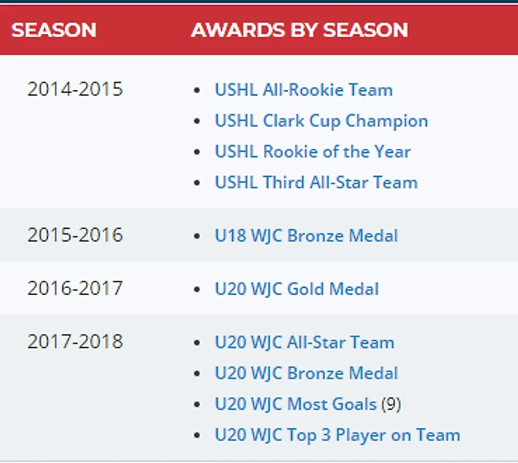 В сезоне 17/18 выступал в WHL, где в 56 встречах отметился 74 очками (41+33).