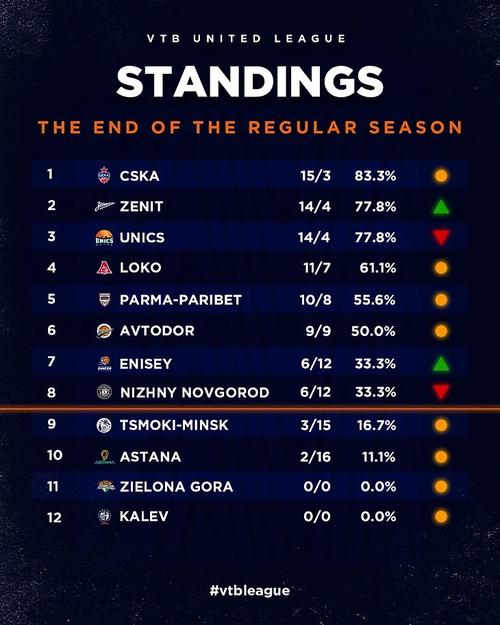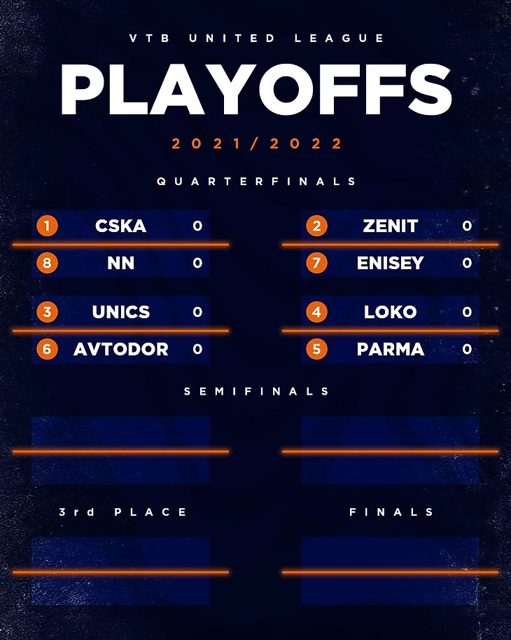 По итогам регулярного чемпионата в четвертьфинальных сериях до 3 побед ЦСКА сыграет с «Нижним», «Зенит» — с «Енисеем», УНИКС – с «Автодором», а «Локо» — с «ПАРМОЙ-ПАРИБЕТ».