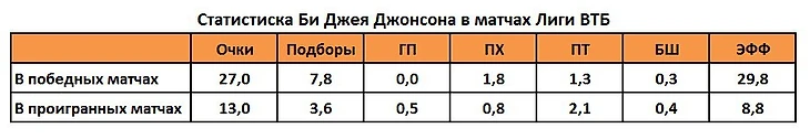 Би Джей Джонсон в отличие от Эллиса не может похвастать стабильностью своих снайперских подвигов. Форвард «ПАРМЫ» является одним из трех игроков Лиги, которые имеют в своем активе минимум два матча с «30+» набранными очками. Но при этом уже трижды в нынешнем сезоне он ограничивался скромной результативностью в 4-5 результативных балла.