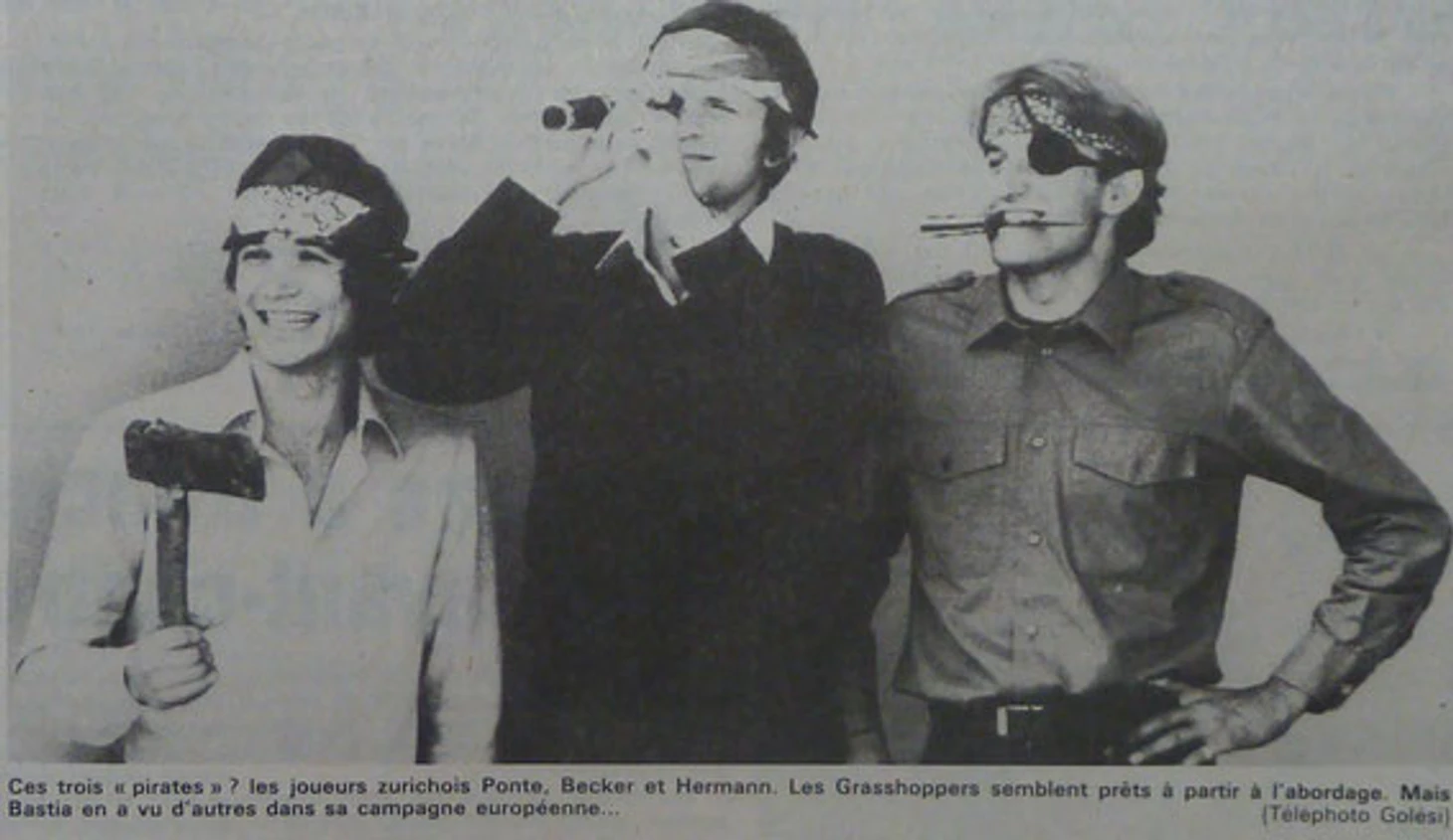 В предверии полуфиналов. Пираты (игроки Грассхоппера Понте, Бекер и Херманн) готовы взять Бастию на абордаж.