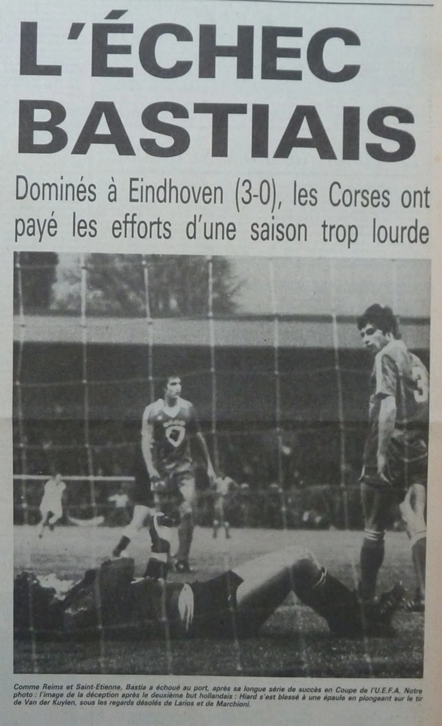 В финале ПСВ ждала эстетически привлекательная корсиканская Бастия, клуб, совершивший невероятный рывок к пиршественному столу европейских небожителей. Профессиональной командой Бастия стала относительно недавно, в 1965 и в первый дивизион чемпионата Франции вышла в 1968. Ещё два года назад, футбольные обозреватели, анализируя перспективы команд в канун очередного сезона, считали, что выживание в высшем эшелоне, кажется, самое большее, на что корсиканская команда может надеяться. Но теперь Бастия могла похвастать искусной магией Джонни Репа, одного из ключевых игроков стильной сборной Голландии на чемпионатах мира 1974-78, и высочайшим талантом марокканца Кримо, игравшего под «скромной» и вместе с тем говорящей кличкой «бразилец», создавшими грозную атакующую связку, которая извлекла немало дивидендов из лаконичного по выражению на поле диспетчерского таланта Клода Папи и интеллекта хавбека Жана-Франсуа Ларио, в определенный момент считавшегося ничем не уступающим по своим талантам самому Платини и даже попытавшегося увести у него жену.