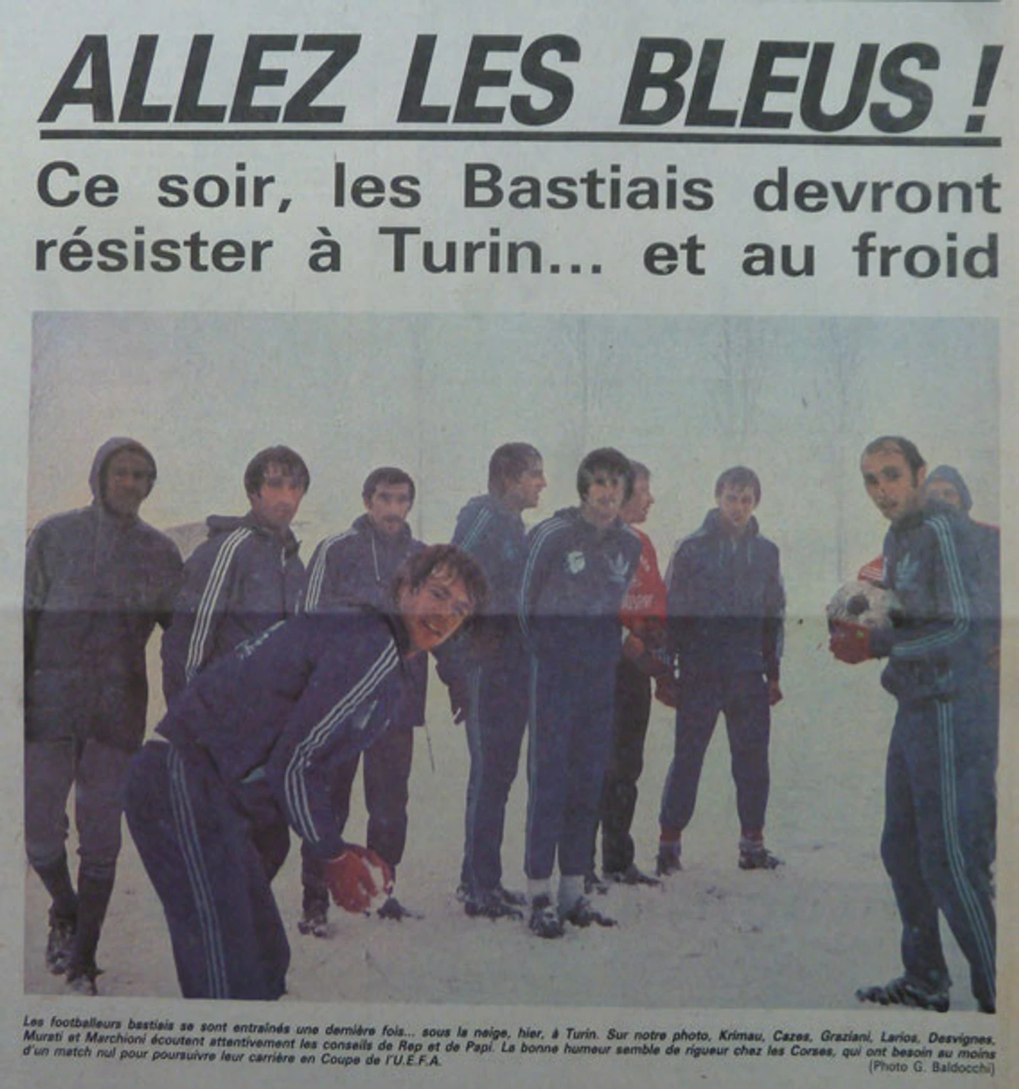 Три недели спустя на Фуриани для первого матча третьего раунда прибывает итальянский Торино, безусловный фаворит в этой паре. Согласно предматчевой статистике, жребий ранее 10 раз сводил итальянцев против французов, и в восьми случаях дальше проходили апеннинские команды. Когда же Паоло Пуличи на 24-й минуте подкинул мяч, а затем, не давая опуститься, слёту вогнал его в дальний угол, показалось, что Бастии нужно горы свернуть, чтобы пробиться в четвертьфиналы.