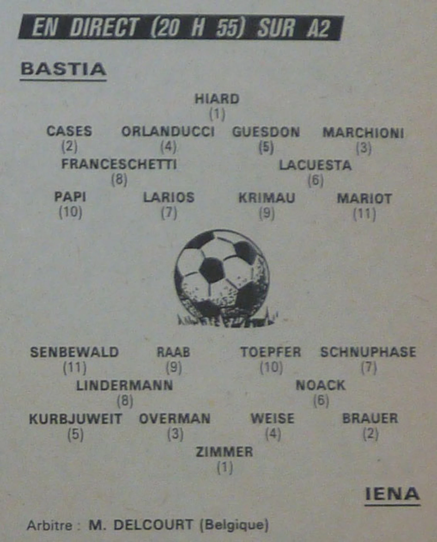 В четвертьфинале, Бастия на пару с восточногерманским Карл Цейссом устроит лавину из 15 (!) голов, одержав потрясающую победу по сумме двух матчей с общим счетом 9-6, причем за корсиканскую команду будут забивать семь различных футболистов.