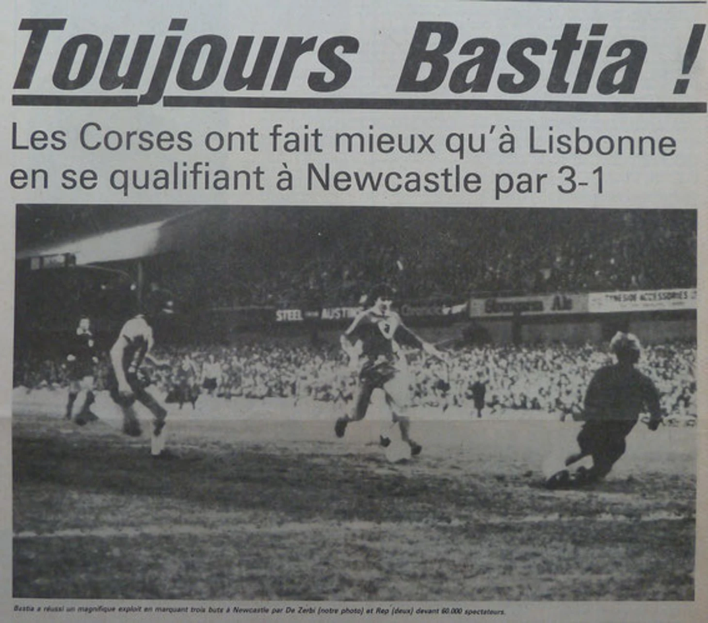 Пять минут спустя, блестящая игра в стенку между Репом и Папи вновь вскрыла оборону Ньюкасла, завершившись вторым голом в исполнении игрока Голландии. Уязвимость Ньюкасла, испытывавшего недостаток уверенности, была слишком очевидной. Имея возможность выбирать когда и сколько расходовать энергии, Бастия добавила только один гол, в середине второго тайма, когда Реп мощно выстрелил с ещё большей дистанции, вонзив мяч в правый от Хардвика угол.