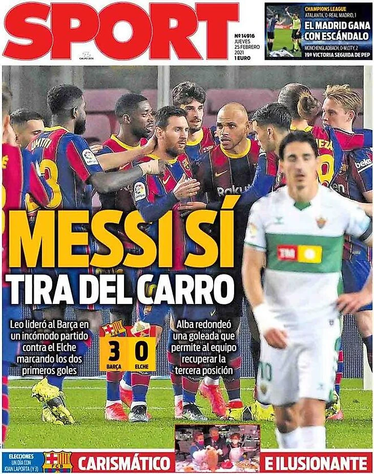 А вот Каталонская газета «Sport» уделила-таки место на обложке этому инциденту, но главным событием вчерашнего вечера, стала победа «Барселоны» над «Эльче»:
