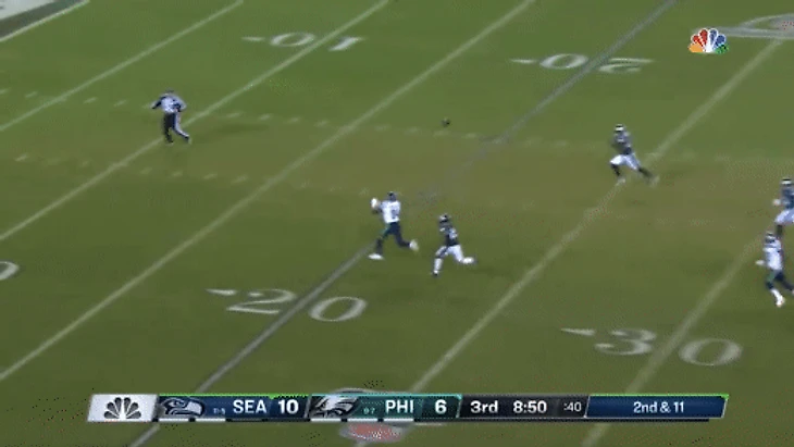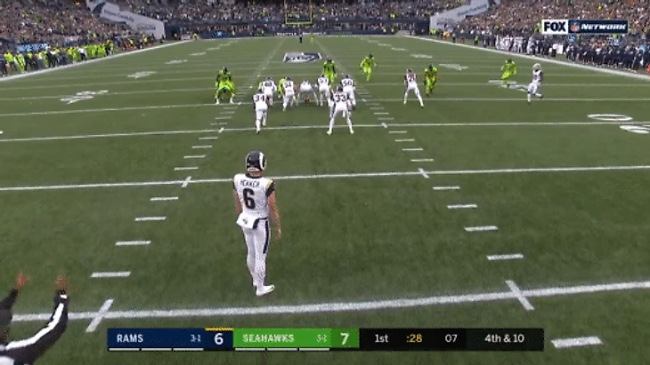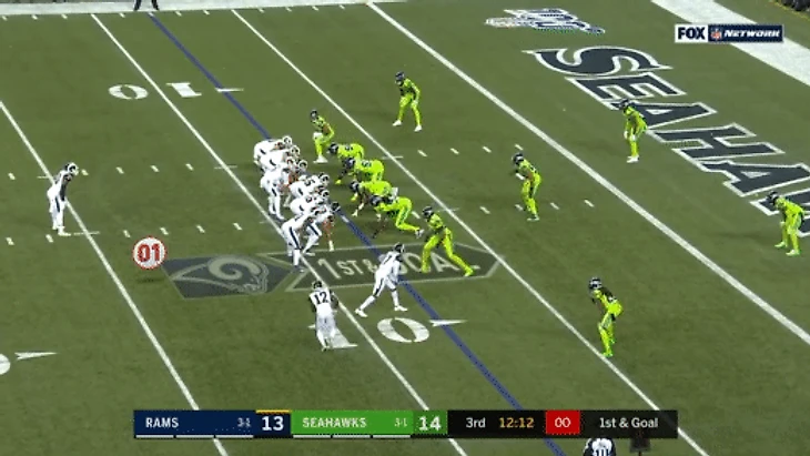 Очки, как и во всех остальных видах спорта, указаны рядом с названиями команд. На этом скриншоте у «Рэмс» 6 очков, у «Сихоукс» – 14.
