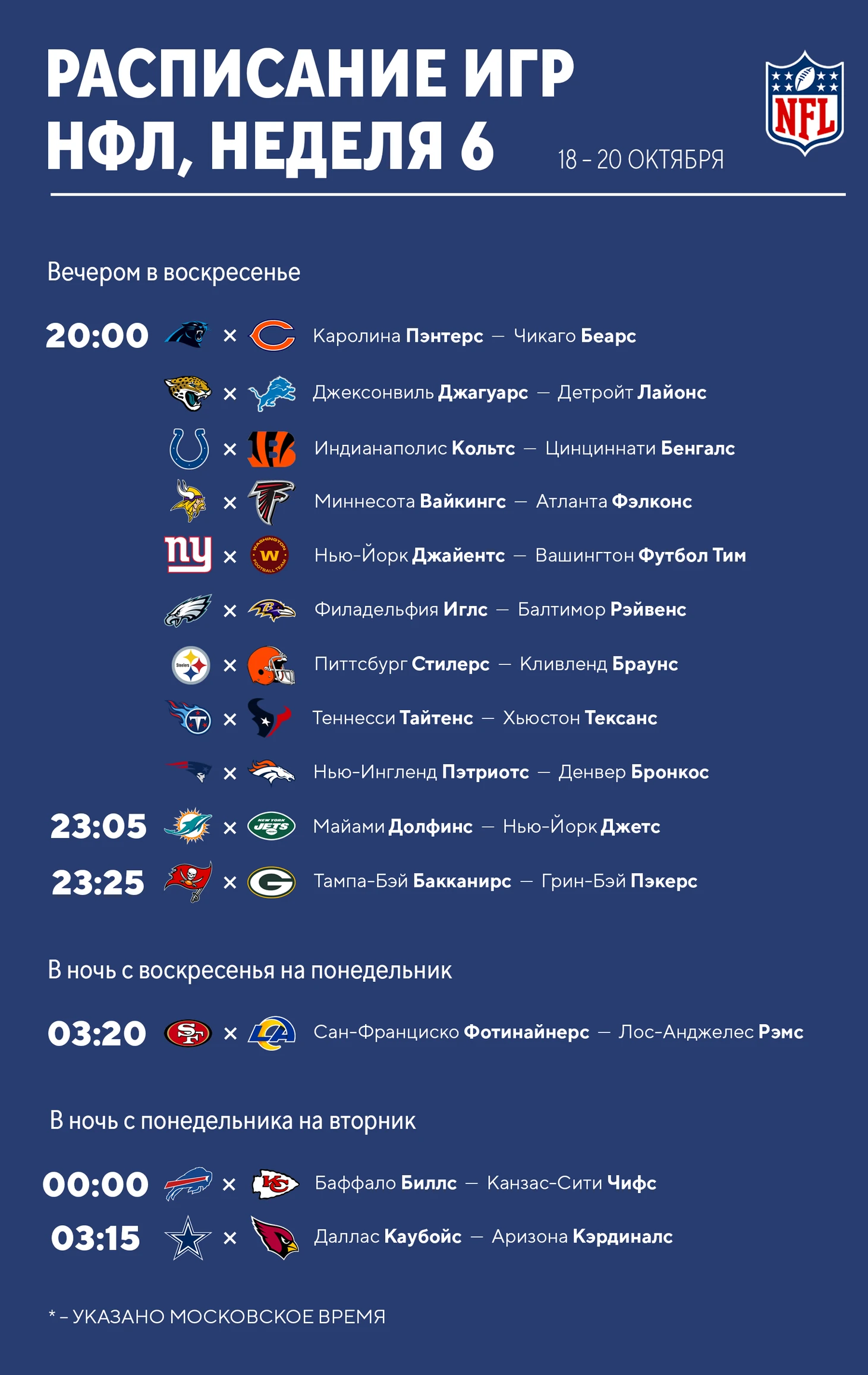 У обеих команд пока по одному поражению в пяти стартовых матчах. У обеих команд мощное нападение, отличные квотербеки, которые одинаково хорошо умеют и отдавать пасы, и выносить ногами. Да, у «Чифс» оно мощнее: Махоумс – это Махоумс, да и за счет разнообразия крутых принимающих и бегущих. Но вот защита «Чифс» не выглядит настолько грозной, чтобы не дать «Биллс» набирать очки, как они могут. Должна быть зрелищная и результативная игра.