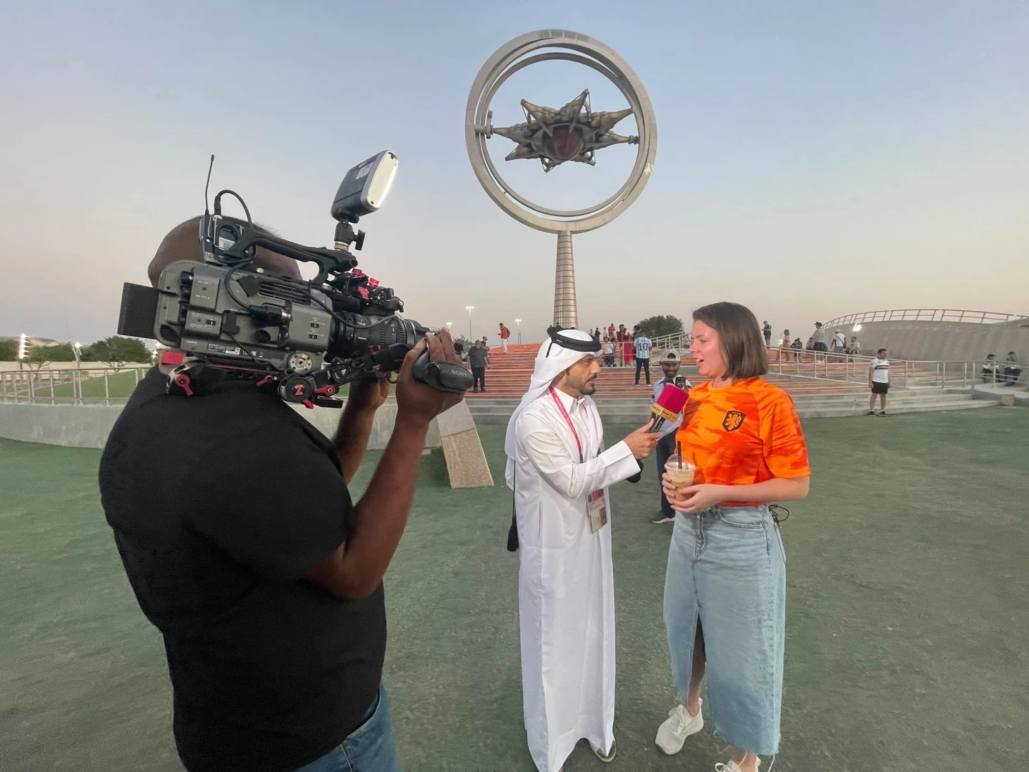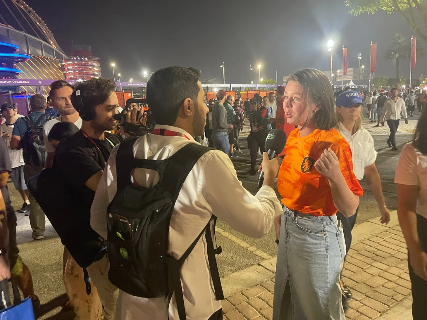 Марину, которая была в футболке Нидерландов, перед игрой выцепили на интервью для какого-то арабского канала.
