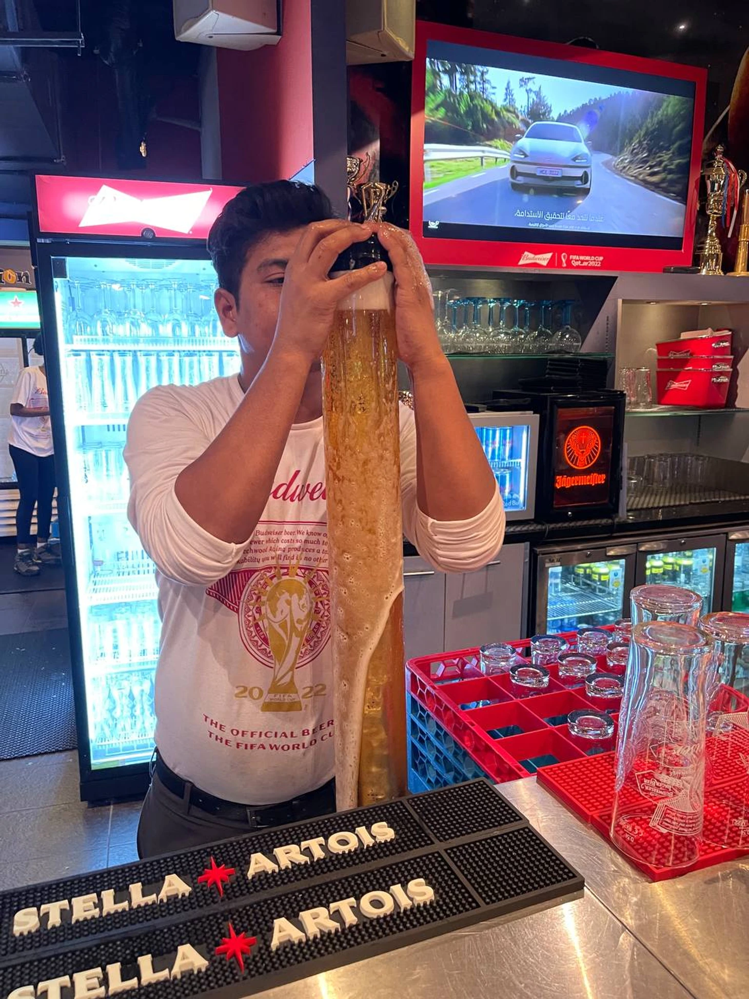 На этом фото, например, Арджун вставляет ледовый меч в пивную башню, заставляя пену литься прямо ему на руки. Тем не менее, Арджун вообще не расстроился: быстро помыл руки и понес башню.