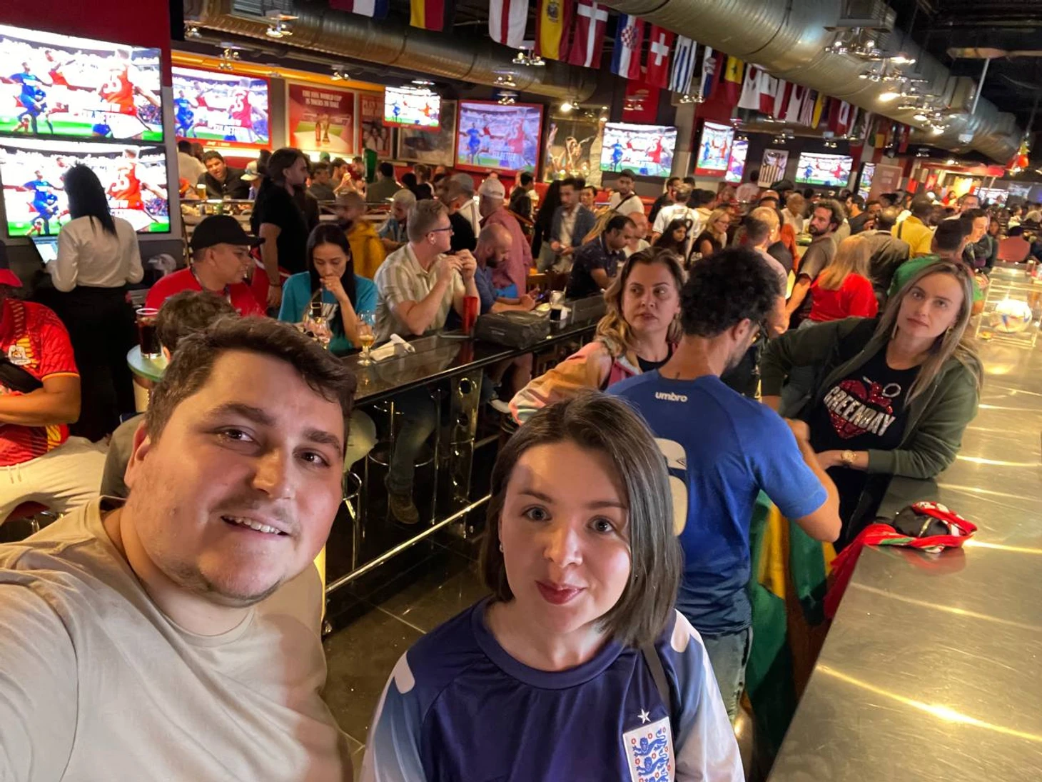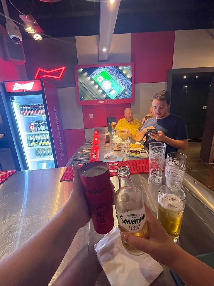 Этот бар находится на третьем этаже отеля «Марриот», вход – через лобби. На входе у тебя смотрят Hayya card (без нее тут даже в туалет сходить нельзя), а только потом ты попадаешь в невероятно футбольную атмосферу.