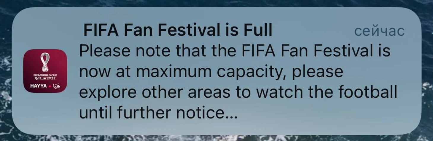 Фан-зоны утомили: бесплатная далеко, не очень удобно добираться, а потом еще идти по бессмысленным змейкам. Более того, в приложении Hayya заботливые организаторы (реально – респект) рассказали, что фан-зона переполнена.