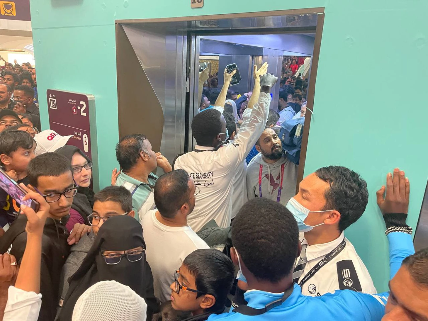 При этом местные сотрудники метро все равно пытались докричаться до толпы и убедить, что лифты на станции – только для женщин, детей и семей, а всем мужчинам нужно идти к эскалаторам.