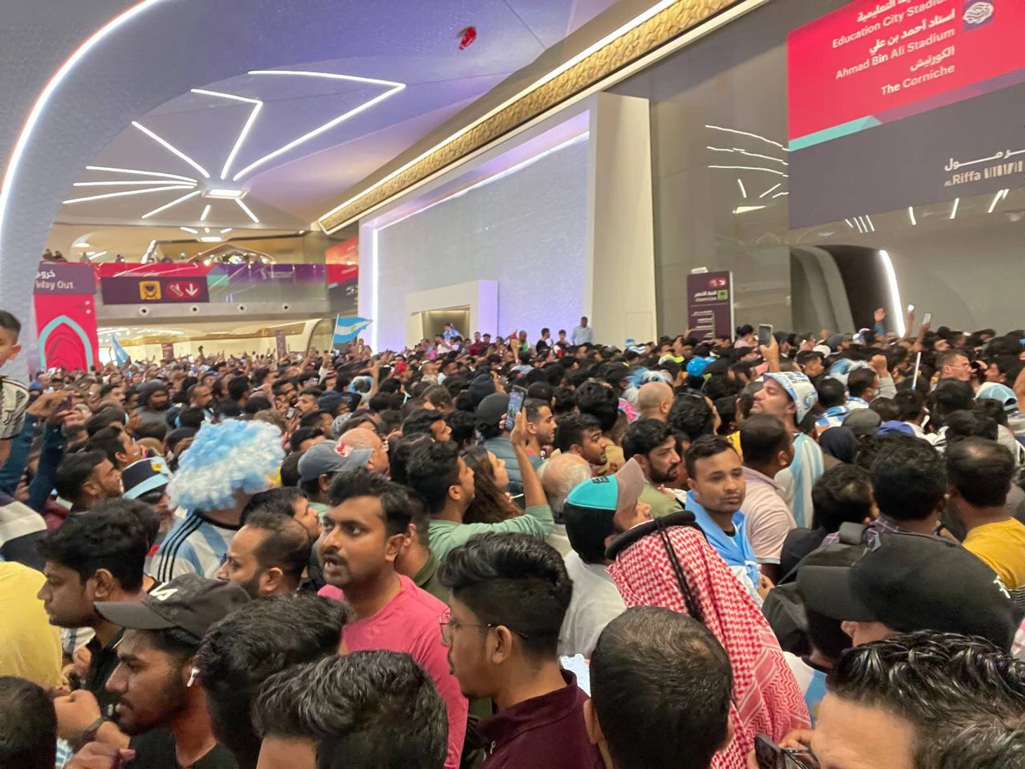 Все дело в том, что стадион «Лусаил», где сыграют финал, находится на той же ветке метро, что и фан-зона – поэтому, чтобы туда добраться, люди вынуждены пользоваться одной и той же пересадочной станцией.
