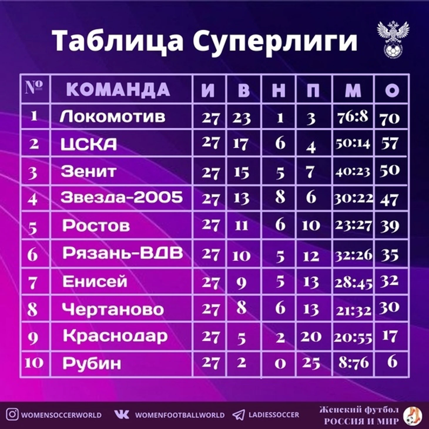 Но несмотря на поражение, питерские футболистки закончили сезон с бронзой (и с почетом проводили завершившую карьеру Екатерину Сочневу). Это первые медали в двухлетней истории клуба. "Звезда-2005" стала четвертой, отстав от топ-3 лишь на 3 балла.
