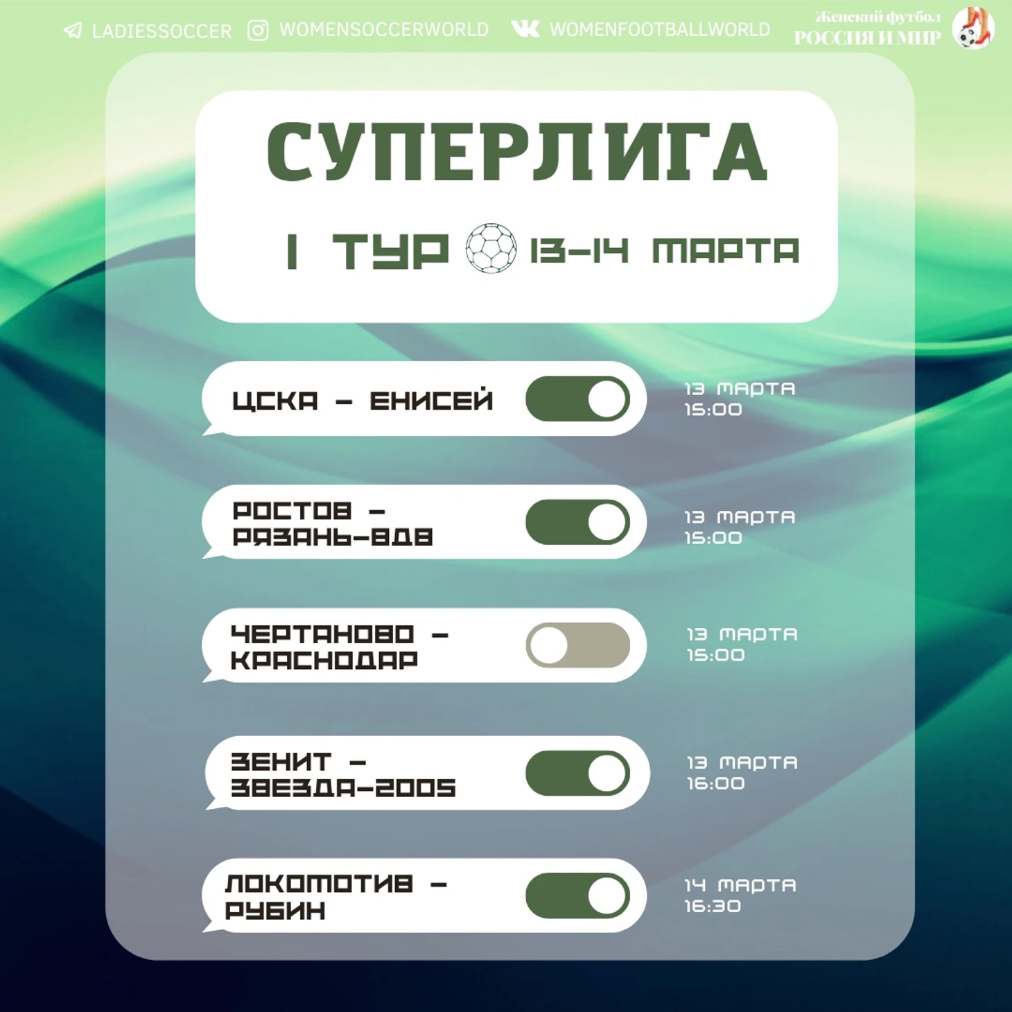 Подписывайтесь на наш блог на Sports, а также аккаунты в социальных сетях. Инстаграму грозит блокировка, однако "в полноценном строю" группа ВКонтакте и Телеграм-канал. Сезон начинается, новостей о женском футболе точно будет много.