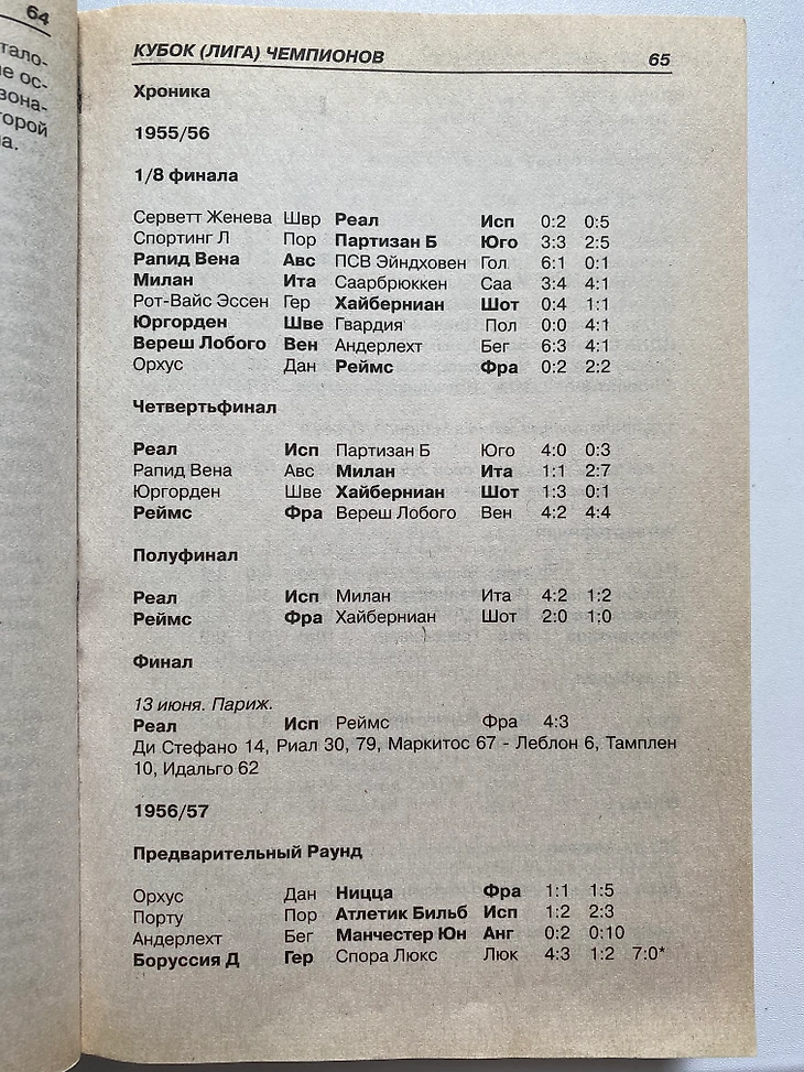 Хотите знать, сколько забил Ди Стефано в ворота "Реймса" в финале Кубка (Лиги) Чемпионов 13 июня 1956 г.? Или ваши вкусы специфичны, и вы хотите знать всех победителей Клубного Чемпионата СЕКАФА? Вам в помощь опус Гольдеса И.В. "Клубные турниры. Европа. Америка. Африка. Азия. Океания".