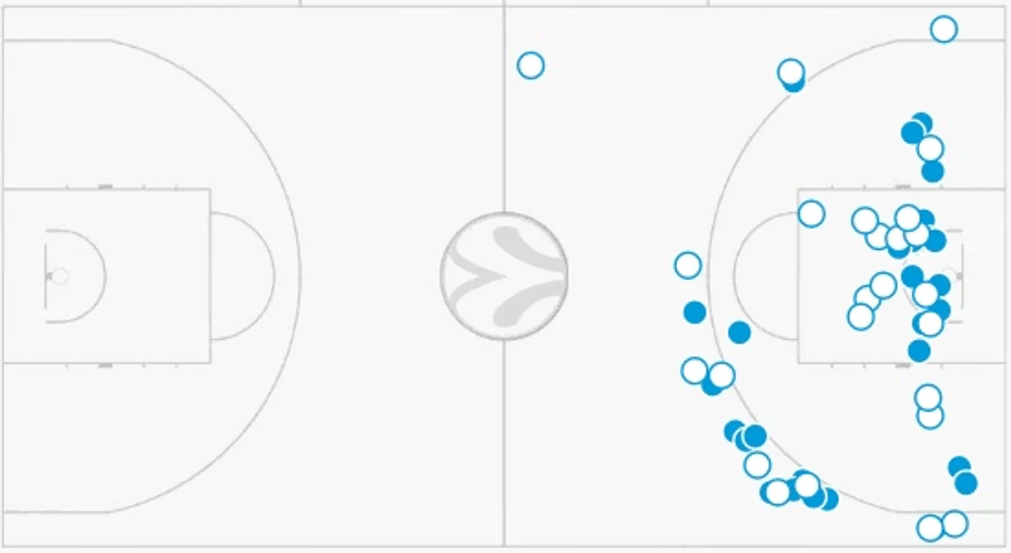 Римас Куртинайтис нащупал слабое место немцев в защите (провалы Лучича и неспособность Ципзера защищаться на ногах против маленьких игроков) и погнал всех своих снайперов именно туда – в правую сторону под 45 градусов. Химчане забили из этой зоны 9 трехочковых (всего – 12)!