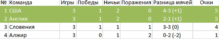 Из следующий группы выйдет в плей-офф сборная Соединённых Штатов и не выигравшая 2 своих 1-х матча звёздная английская сборная.