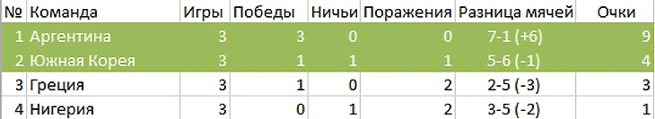 В группе B Аргентина с Месси, возглавляемая самим Марадоной, уверенно вышла с 1-ого места, но как не странно главным действующим лицом в составе «альбиселесте» был не Лео, а Гонсало Игуаин, ставший автором единственного хет-трика в рамках кубка мира 2010.