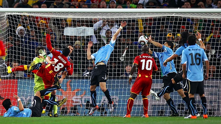 Однако самой захватывающей, интересной и возможно одной из самых ярких по драматургии игрой в истории всех Чемпионатов Мира станет игра Ганы и Уругвая. В основное время обе команды обменяются пушечными выстрелами, постараются Мунтари с Форланом. А когда до серии пенальти останется всего пару секунд, Луис Суарес сыграет рукой в своей штрафной площади.