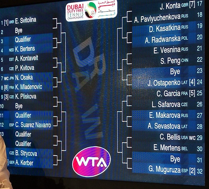 Сетка турнира WTA категории "Премьер 470" в Дубае.
