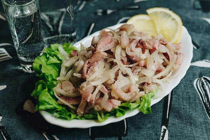 Еще одно местное блюдо из свежей рыбы – строганина. Это замороженная рыба из сиговых пород, нарезанная стружкой, которую макают в смесь из соли и перца. В ресторанах также можно попробовать лосятину и оленину.