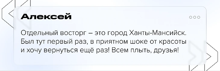 Антон Пилипас: «Югра – это регион, сочетающий уникальные историко-культурные и природные ресурсы, живую культуру угорских племен, дары природы и туристские объекты. Приезжайте, чтобы насладиться краем, и пройдите испытание на прочность, переплыв крупнейшую реку Сибири».