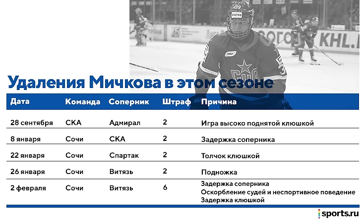 А Мичков за пять минут до конца снова поехал отдыхать на 2 минуты. Правда, на этот раз повезло – не пропустили. Но личный рекорд по штрафам в одном матче он обновил.