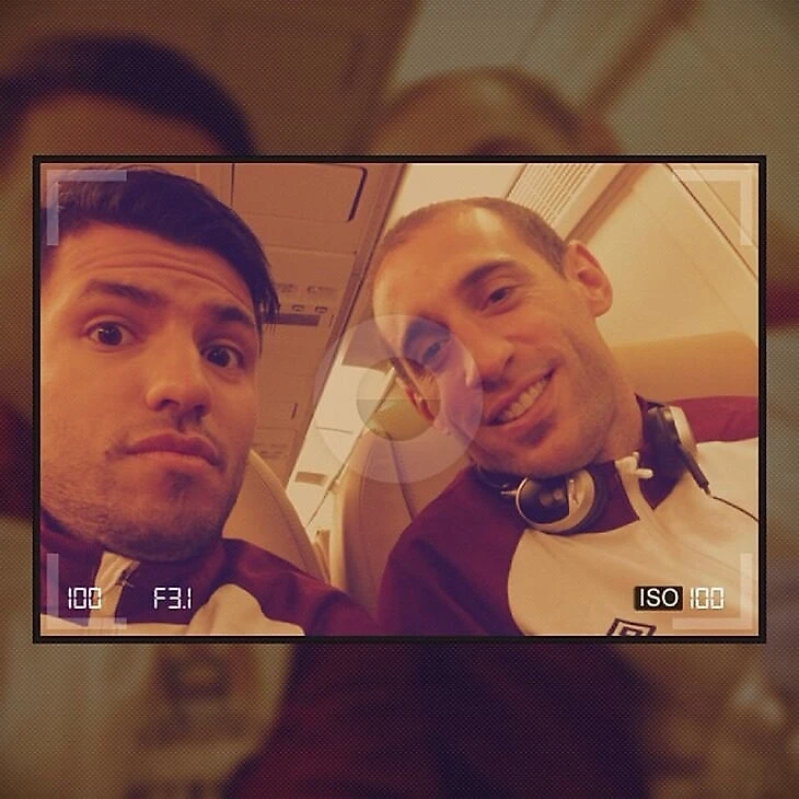 Партнер Месси по сборной Серхио Агуэро начал ведение инстаграма с фотографии, на которой он запечатлен с Пабло Сабалетой по дороге в Саутгемптон.