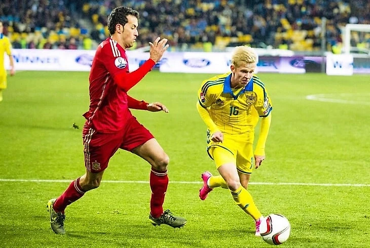 Куда же без украинского красавчика Сани Зинченко? На этом фото он мастерски разбирается с Серхио Бускетсом. Разве не идеальный первый пост молодого таланта?